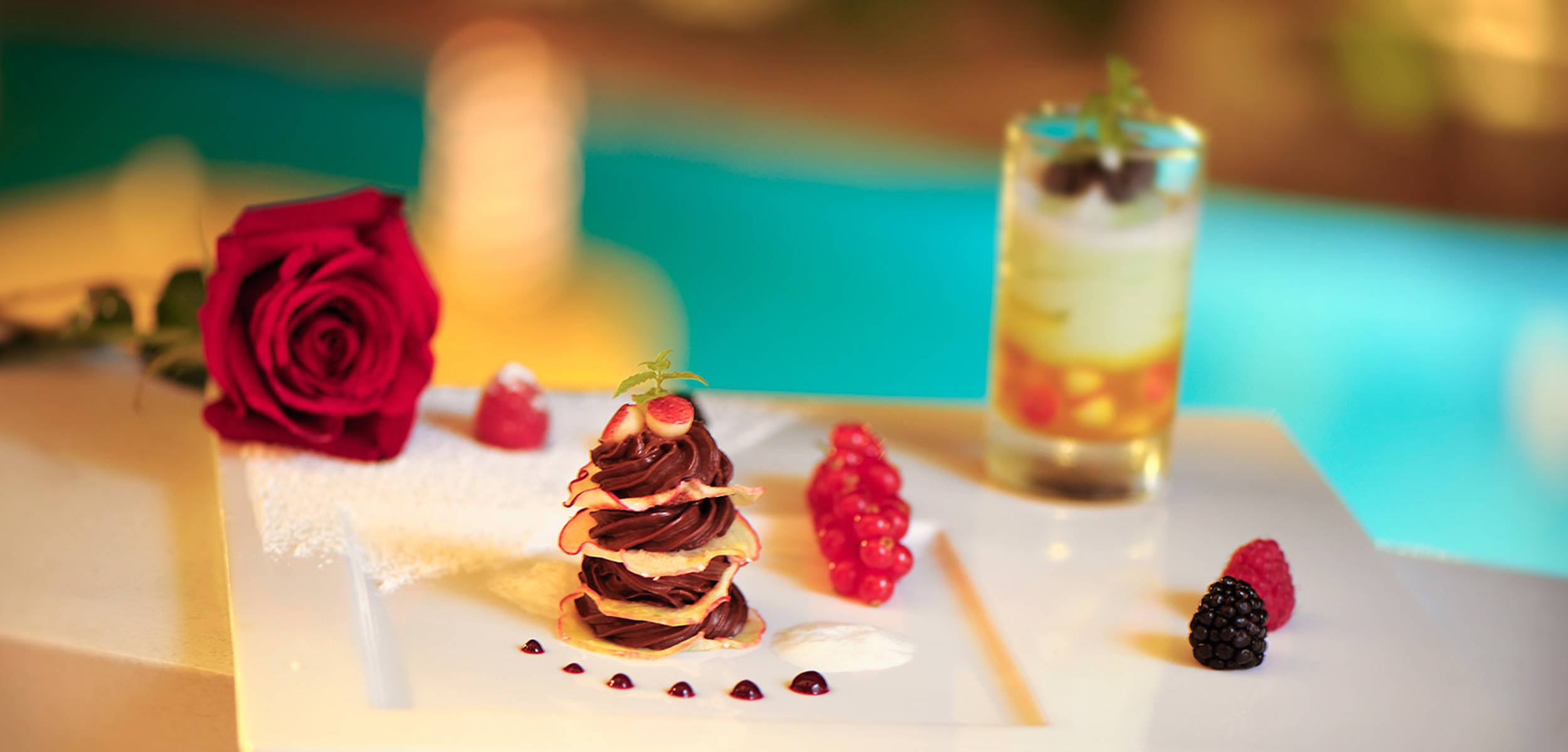 Make yourself comfortable and prepare to enjoy the joys of this 5-course meal. You will enjoy a delightful 5-course gourmet dinner. And among the Lucullian highlights of your stay, a romantic candle-light dinner, a 7-course gala dinner and speciality evenings such as the Serata Italiana, Tyrolean, Spanish or Euro-Asian evenings, or fun chestnut-roasting parties in the Fall.